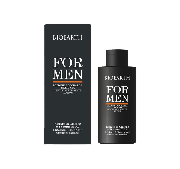 Formula delicata senz’alcol con Acido ialuronico ed estratti BIO di Ginseng, Tè verde, Amamelide e Malva: ideale per trattamento post-rasatura, lascia la pelle fresca e rigenerata.