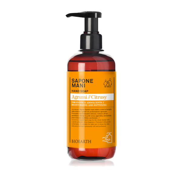Sapone liquido mani adatto a tutta la famiglia dalla delicata e gradevole profumazione agrumata. Formulato con tensioattivi delicati, è idoneo all’uso quotidiano: arricchito con oli essenziali di Limone e Arancio da agricoltura biologica deterge la pelle senza aggredirla, lasciandola piacevolmente morbida profumata. Il pratico flacone in PET rigenerato con dispenser facilita l’erogazione del prodotto senza inutili sprechi.