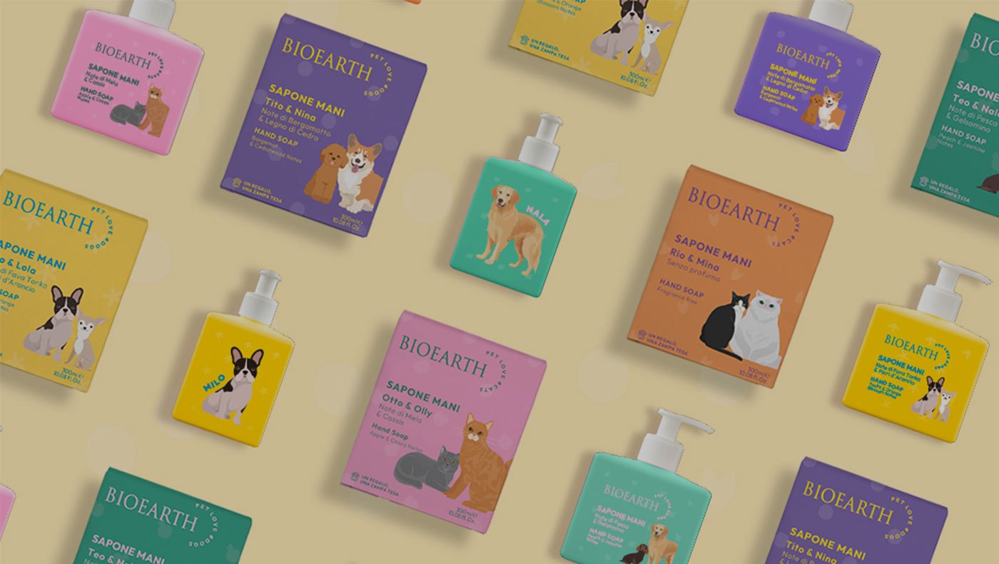 Una collezione di 5 coloratissimi cofanetti singoli, ognuno con un sapone mani da esposizione, ispirata a cani e gatti iconici e all’amore che ci lega a loro.