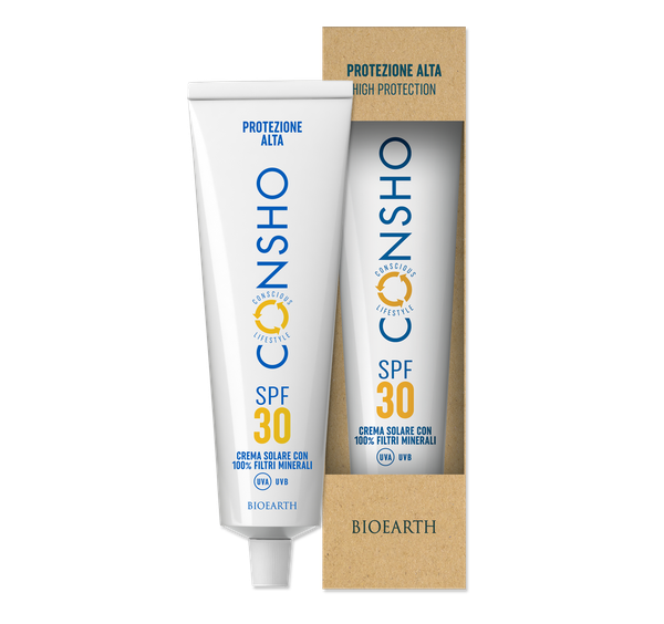 Crema solare SPF 30 vegan, certificata BIO ECO e progettata con la massima attenzione per la pelle e l'ambiente. Offre una alta protezione SPF 30 ampio spettro contro i raggi UVA e UVB attraverso l'uso di soli filtri minerali di dimensioni superiori a 0,1 μm.