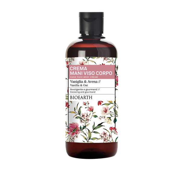 al delicato profumo di Vaniglia, con olio di Cocco, di Man- dorle dolci ed estratto di Avena BIO.