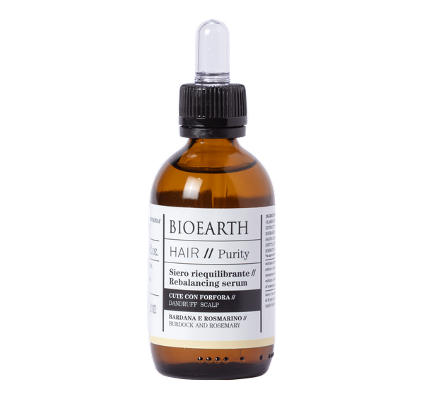Siero emolliente e purificante con bardana, ortica e oli essenziali di rosmarino e salvia per lenire la sensazione di prurito e gli inestetismi della forfora. Non unge. Si consigliano un uso quotidiano e continuativo per almeno 1-3 mesi.