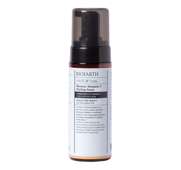 Mousse fissante con thè verde, avena e grano germinato dall'azione fissativa e modellante. Definisce i ricci senza appesantirli per un risultato disciplinato e naturale. Tenuta forte.