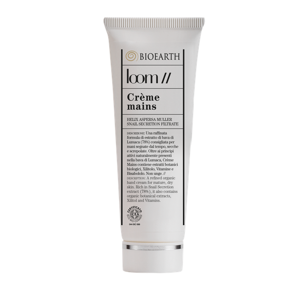 Una raffinata formula per la cura delle mani ad alto tenore di estratto di bava di lumaca consigliata per mani segnate dal tempo, secche screpolate.