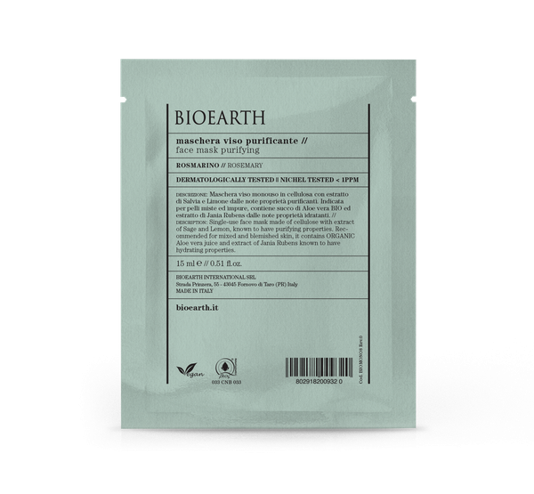 Maschera viso monouso in cellulosa con estratto di Salvia e Limone dalle note proprietà purificanti.