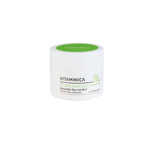 Scrub con una base cremosa arricchita da burro di karitè bio e funzionalizzato da semini di kiwi e polvere di riso.