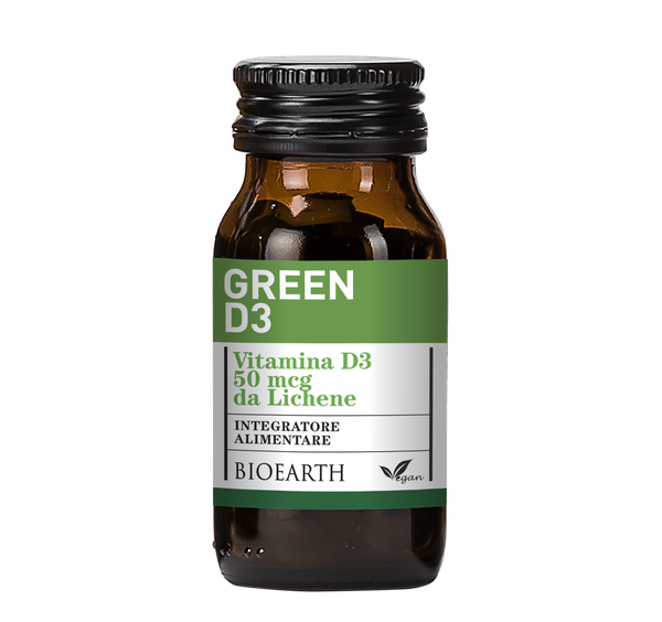 Integratore alimentare di Vitamina D3 100% naturale e ad alta biodisponibilità da Lichene islandico. La Vitamina D contribuisce alla normale funzione del sistema immunitario e al normale assorbimento del clacio e del fosforo, al mantenimento di ossa e denti normali.